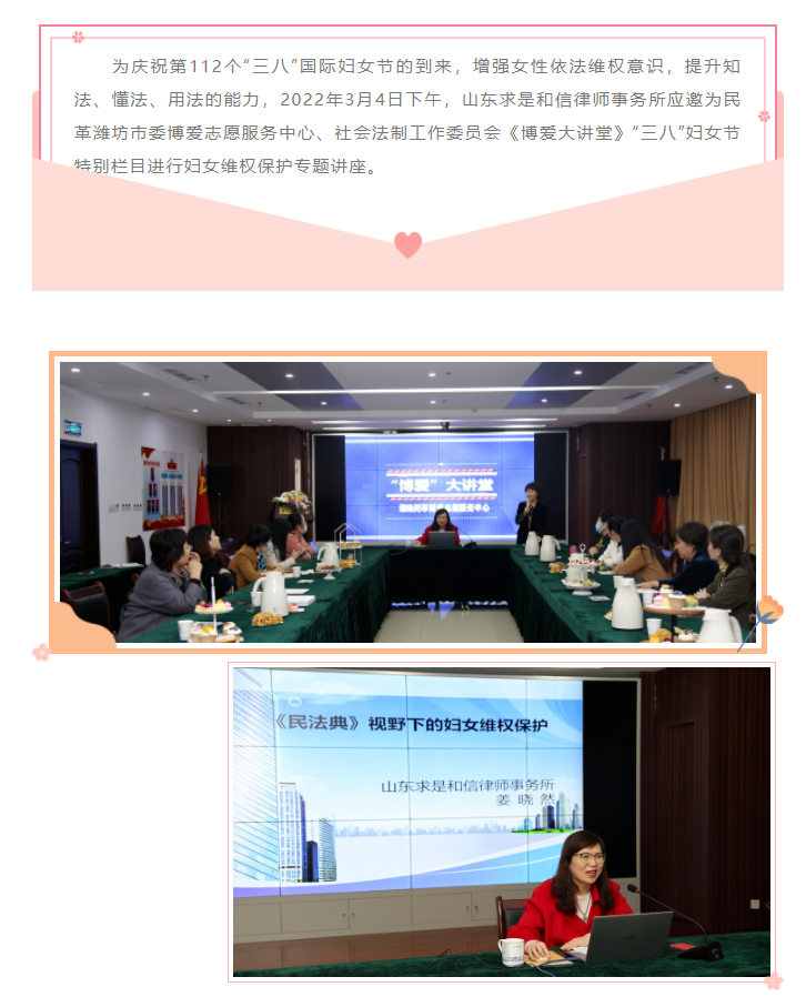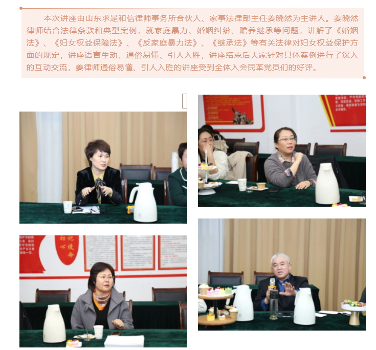 『求是资讯』山东求是和信律师事务所为民革潍坊市委会举办庆祝“三八”妇女节法律专题讲座