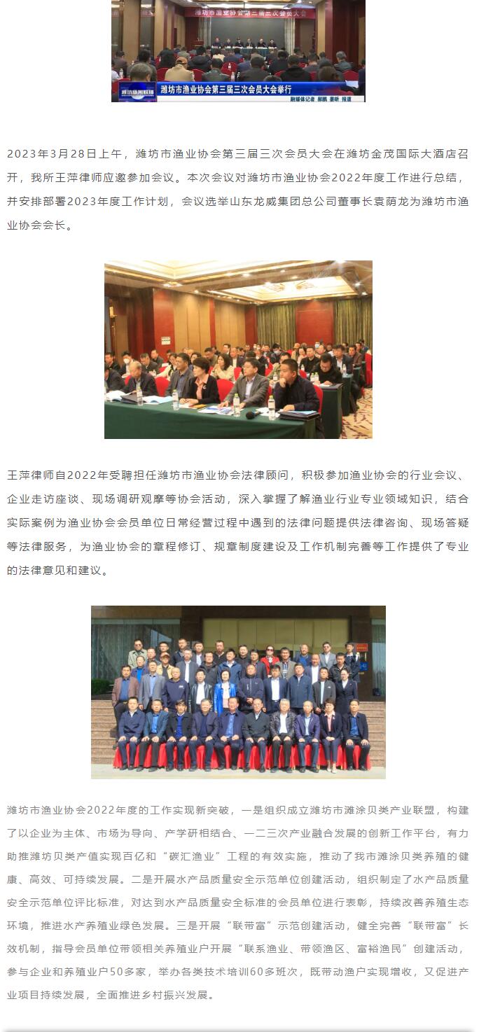 求是动态 | 王萍律师应邀参加潍坊市渔业协会第三届三次会员大会