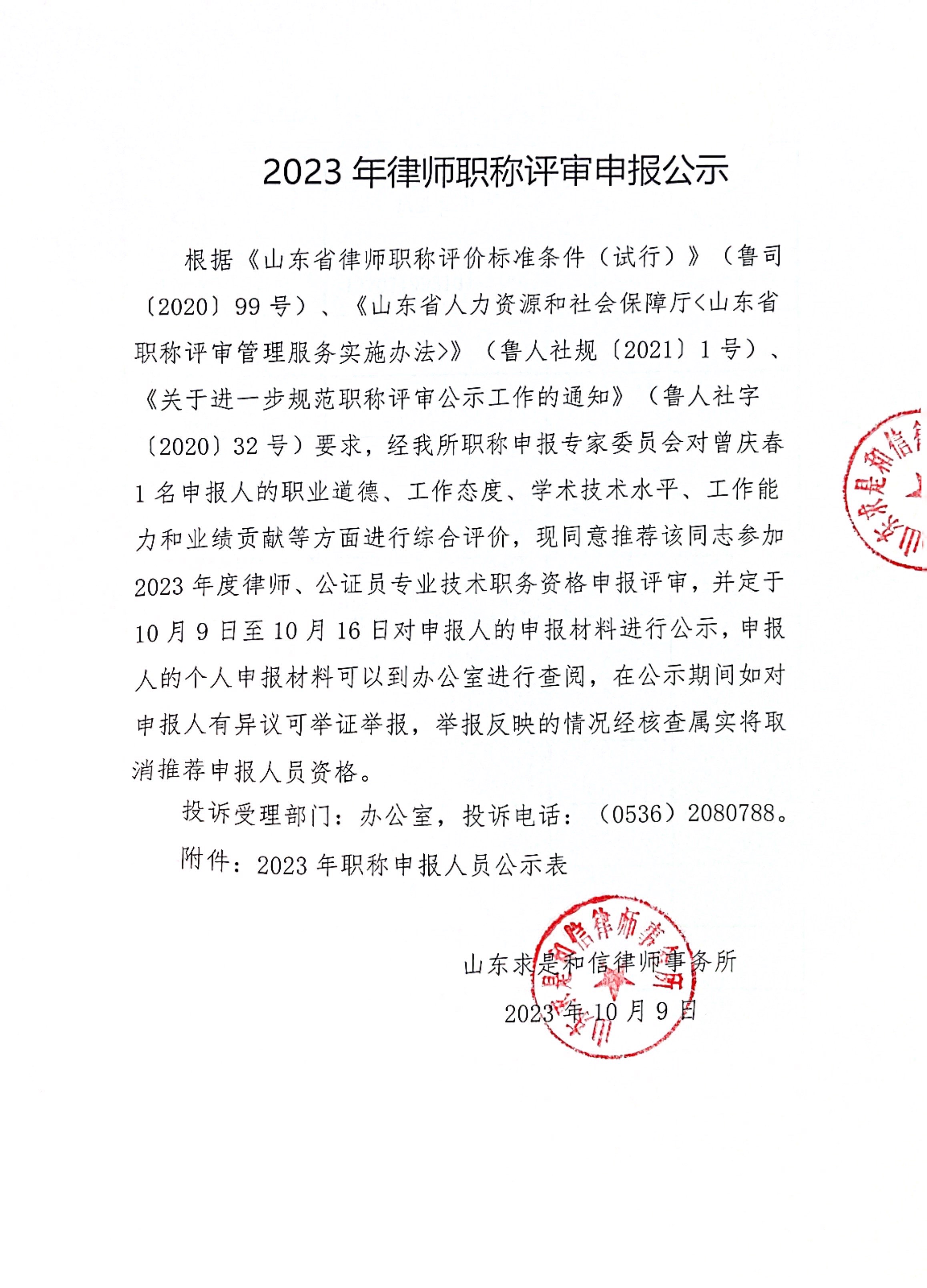 求是动态 | 2023年律师职称评审申报公示 来源:求是和信网 日期:2023-10-20 14:39 发布人:qshx 浏览量: 1005 上一篇:求是动态 | 我所律师参加刑事合规不诉、从宽律师实务研修班 下一篇:求是动态 | 我所青年律师闪耀“大成杯”诉辩赛场 专业素养与团队协作铸就卓越战绩