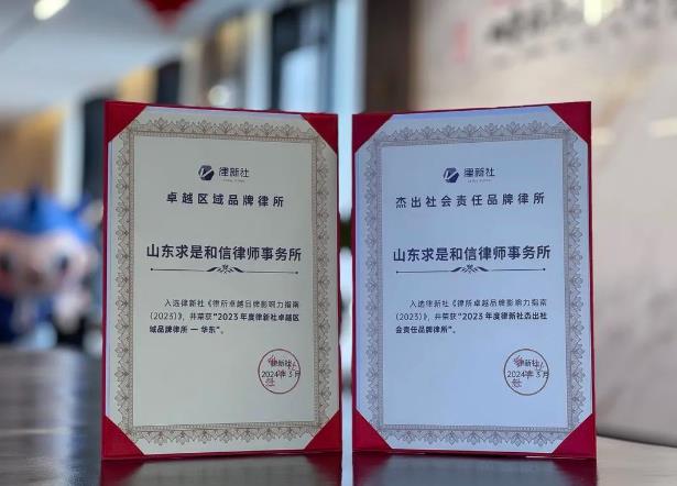 山东求是和信律师事务所入选律新社《律所卓越品牌影响力指南(2023)》并荣获“2023年度律新社卓越区域品牌律所-华东”“2023年度律新社杰出社会责任品牌律所”多项荣誉。