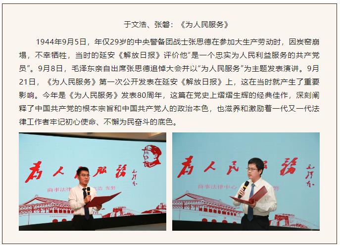 朗诵结束后,管理委员会主任马东宁和副主任刘世伟对本次朗诵会进行总结,表示这次朗诵会活动举办的非常成功,希望大家要积极参加文化活动,推动求是和信文化体系建设,将文化引领融入律所管理。