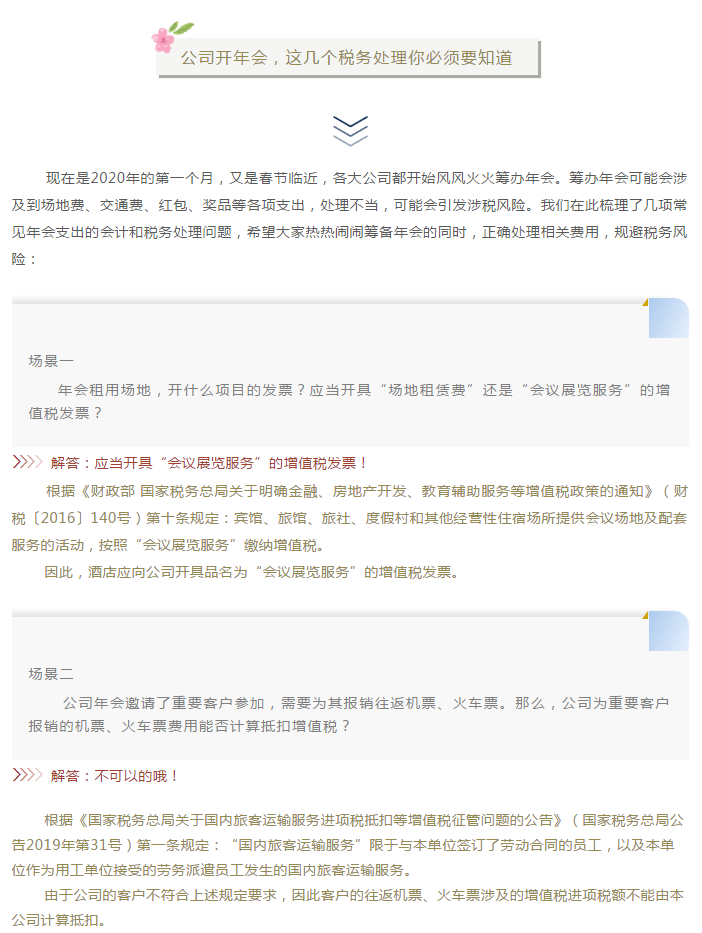 公司开年会,这几个税务处理你必须要知道 来源:求是和信网 日期:2020-01-19 15:22 发布人:qshx 浏览量: 3072 上一篇:一房三签何为真 淘尽黄沙始到金 下一篇:《九民纪要》下如何审查公司担保行为的有效性