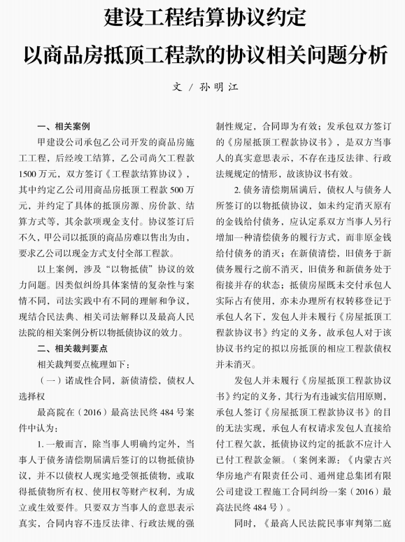 建设工程结算协议约定 以商品房抵顶工程款的协议相关问题分析 来源:求是和信网 日期:2022-01-10 15:12 发布人:qshx 浏览量: 4236 上一篇:【求是商事中心】人章争夺、人人争夺、章章争夺等情形下, 谁有权代表公司参加诉讼? 下一篇:股权并非夫妻共同财产, 未经配偶同意即转让股权,不属无权处分
