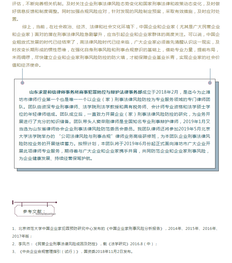 『刑事合规研究』企业(家)应高度重视刑事法律风险防控 来源:求是和信网 日期:2019-04-09 15:14 发布人:商事犯罪防控与辩护部 浏览量: 3717 上一篇:窦荣刚律师辩护侵犯人身权犯罪案件成功案例选 下一篇:求是刑辩 | 解得鹏、孙晓蒙律师办理的故意伤害法律援助案件当事人被解除强制措施