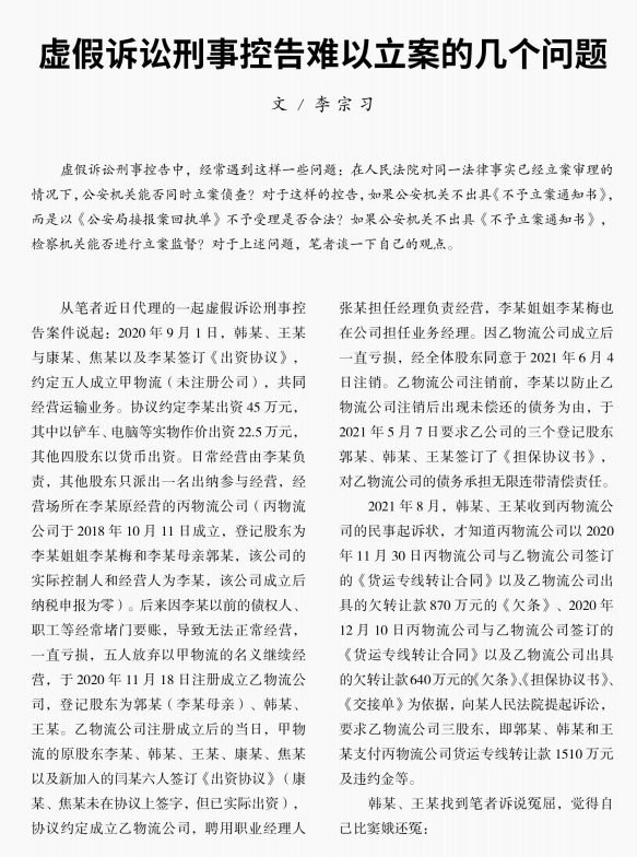 虚假诉讼刑事控告难以立案的几个问题 来源:求是和信网 日期:2022-01-10 14:39 发布人:qshx 浏览量: 6047 上一篇:一起商事犯罪案件大幅减刑改判的辩护经验与合规启示 下一篇:求是刑辩 | 解得鹏、孙晓蒙律师办理的故意伤害法律援助案件当事人被解除强制措施