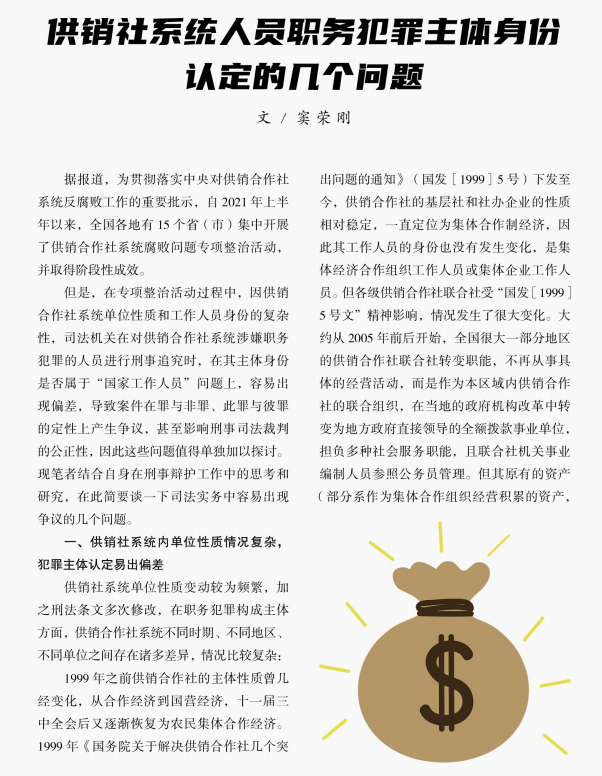 供销社系统人员职务犯罪主体身份认定的几个问题 来源:求是和信网 日期:2022-01-10 15:00 发布人:qshx 浏览量: 5133 上一篇:虚假诉讼刑事控告难以立案的几个问题 下一篇:求是刑辩 | 解得鹏、孙晓蒙律师办理的故意伤害法律援助案件当事人被解除强制措施